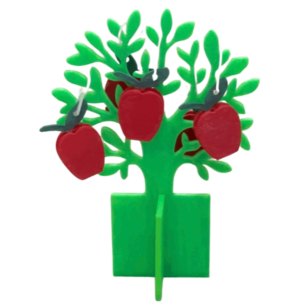 تأخذ شكل شجرة تحمل تفاحات صغيرة.