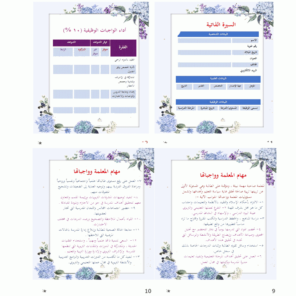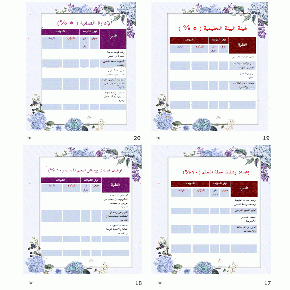سجل توثيق شواهد الأداء الوظيفي للمعلمة :