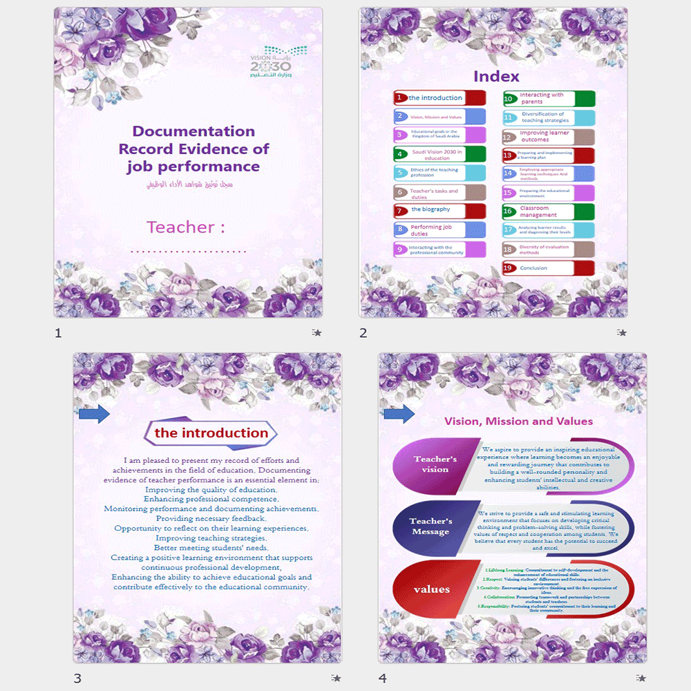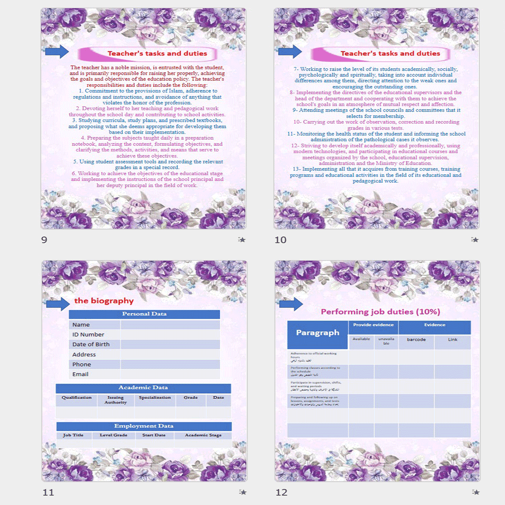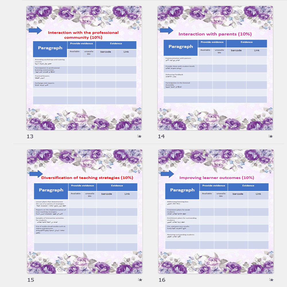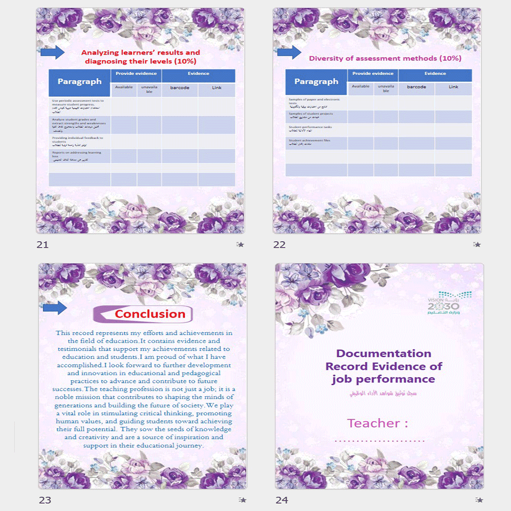 سجل توثيق شواهد الأداء الوظيفي للمعلمة :